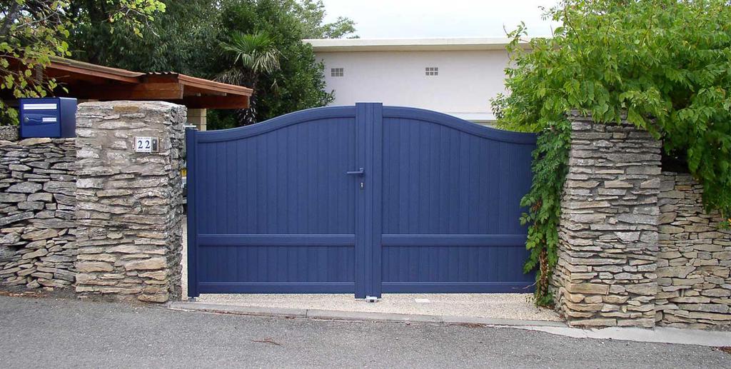 La gamme Jack.R permet de fabriquer des portails aluminium, droits ou en chapeaux de gendarme, avec des types de remplissage divers : à lames pleines ou ajourées. Un portail aluminium design à petit